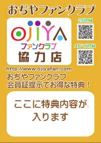 商品お買い上げ金額 100円ごとにおぢやファンクラブ会員カードに1ポイント付与。