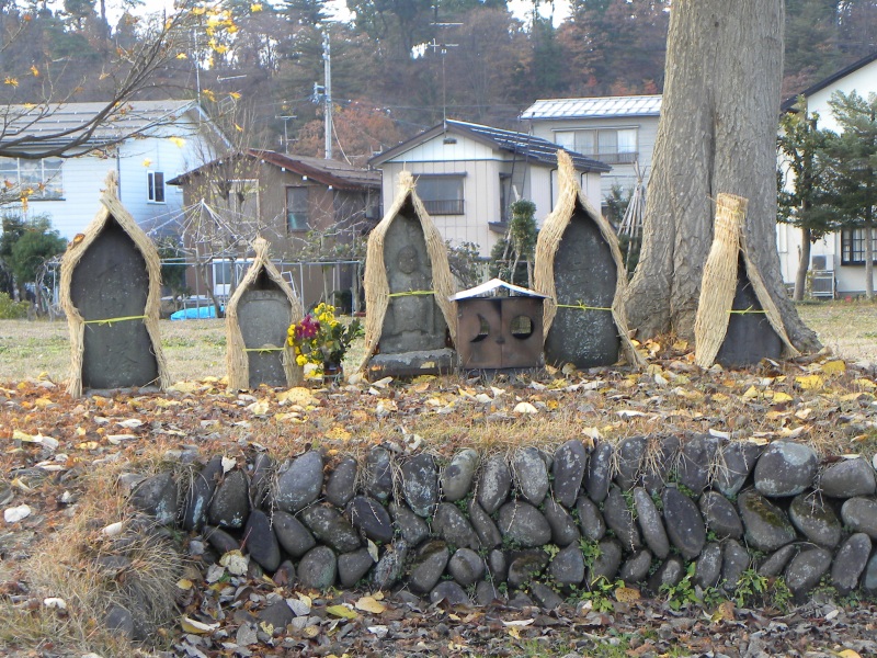 紅葉が終わると、冬支度が始まります。道端のお地蔵様も毎年冬支度で冬を越しています。