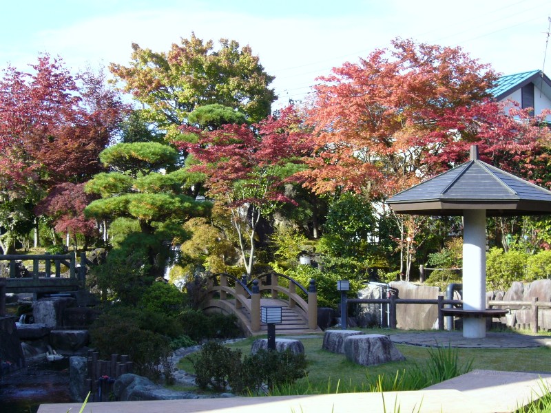 サンプラザに隣接している錦鯉の里の日本庭園も少しずつ色づいてきました。松の緑とのコントラストがとても綺麗です。