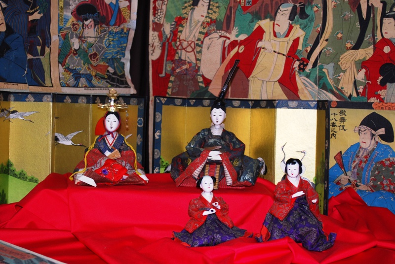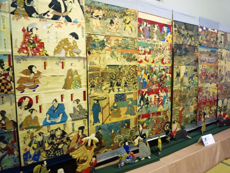 小千谷では古くからひな祭りに、ひな人形を飾った部屋一面に色とりどりの絵紙〔えがみ〕(浮世絵)を貼り付けて飾る風習がありました。